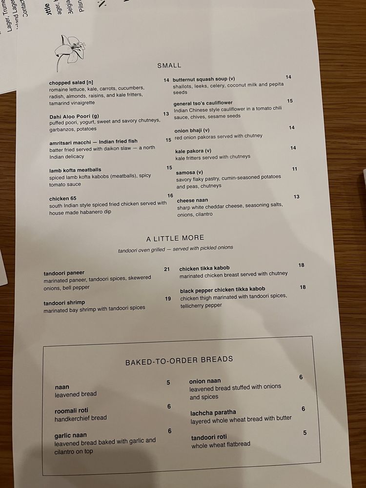 piece. Spiced minced lamb and peas, paired with toasted, buttered soft bun, chutneys, slaw, and Indian-style mayo